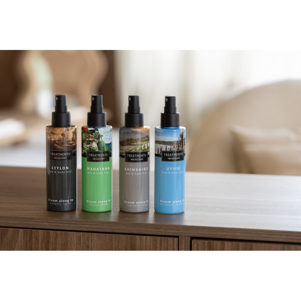 Zestaw kosmetyków Body & Fragnance Mailbox TREATMENTS, przeznaczony dla kobiet i mężczyzn, w zestawie znajduje się: mgiełka do ciała i pościeli 50 ml, olejek do ciała 50 ml, żel pod prysznic do włosów i ciała 50 ml, elegancki, papierowy kartonik, w którym zapakowane są kosmetyki, sprawdzą się w codziennej pielęgnacji, dostępne są różne warianty zapachowe: 03 - Ceylon, 06 - Mahayana, 11 - Uyuni, 19 - Shinshiro. Znakowanie produktu jest możliwe tylko na srebrnej lub złotej folii z czarnym nadrukiem albo na czarnej apli ze srebrnym lub złotym nadrukiem.