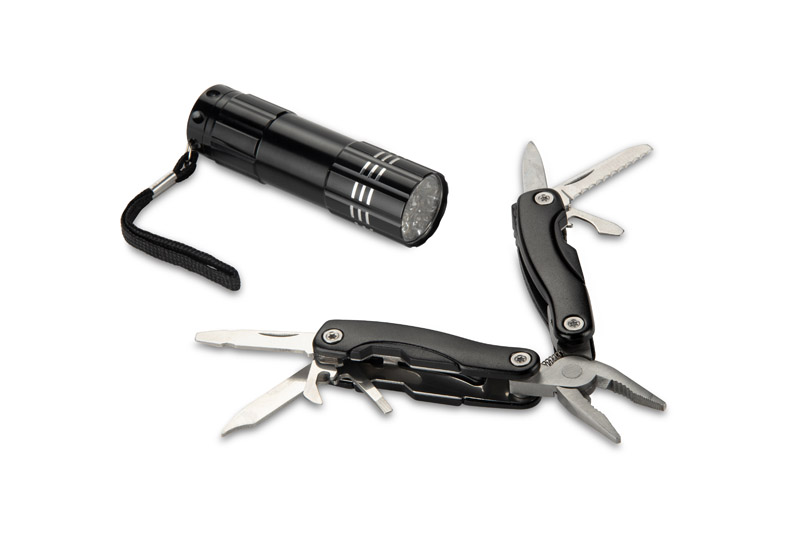 Zestaw narzędzi HEXAL to praktyczny komplet składający się z latarki i multitoola, idealny w podróży, w pracy czy w domu. Multitool wyposażony jest w funkcjonalne narzędzia: kombinerki, pilnik do drewna i metalu, otwieracz do butelek, piłę, otwieracz do piwa, nóż oraz śrubokręt krzyżakowy. Latarka stanowi przydatne uzupełnienie zestawu, zwiększając jego uniwersalność. Całość zapakowana jest w pudełko, co czyni HEXAL również atrakcyjnym pomysłem na praktyczny upominek reklamowy.