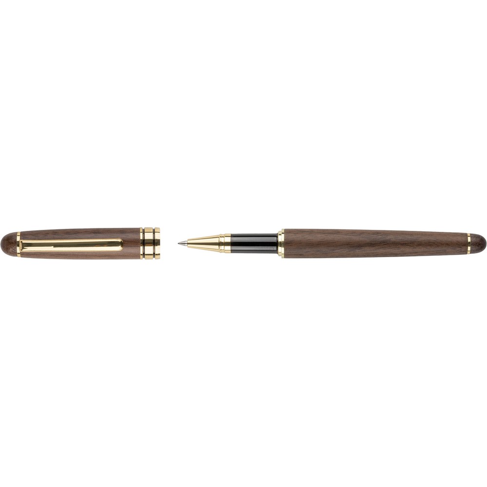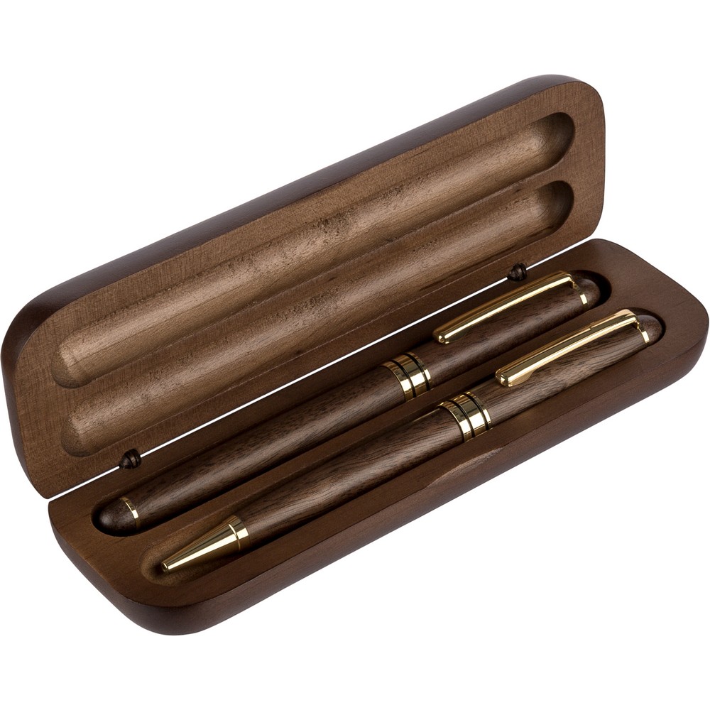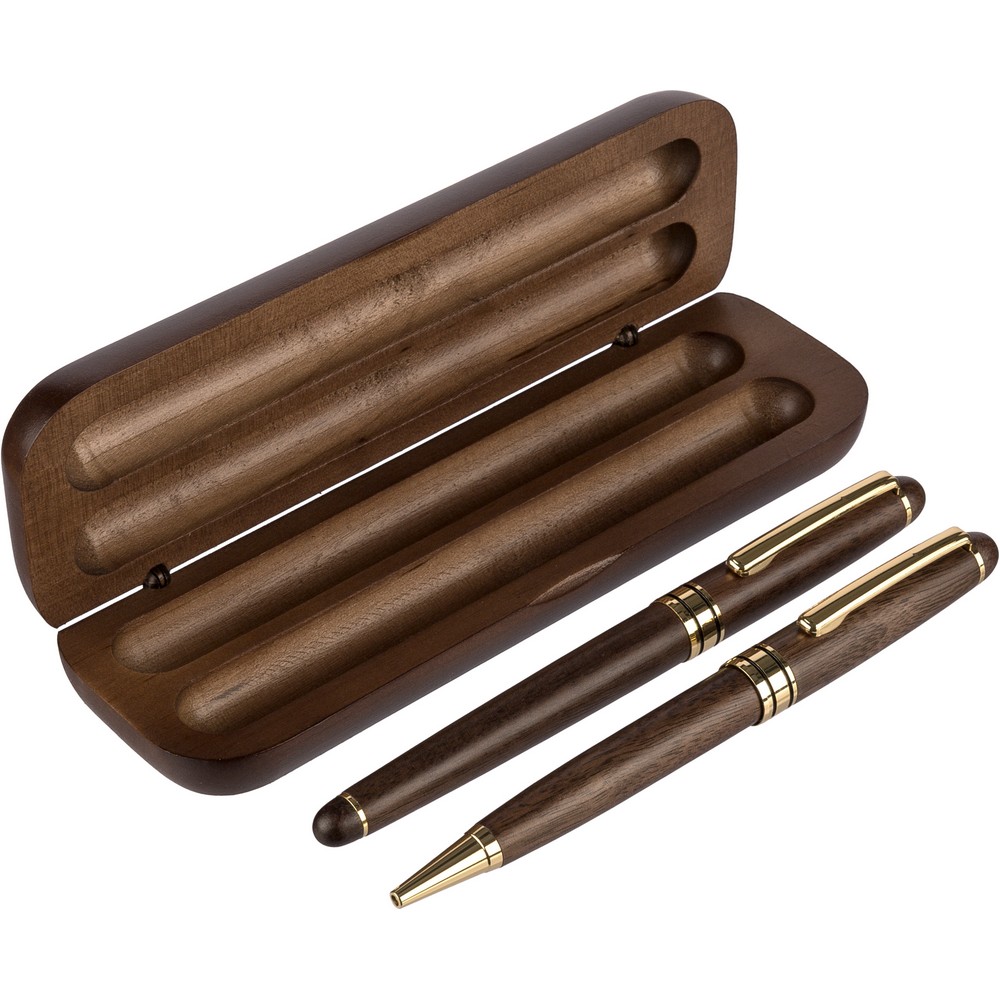 Zestaw piśmienniczy, długopis i pióro kulkowe, wkład w niebieskim kolorze wystarcza na ok. 1000 m pisania dla długopisu, ok. 400 m pisania dla pióra kulkowego, zapakowany pojedynczo w brązowy kartonik, produkt wykonany z metalu