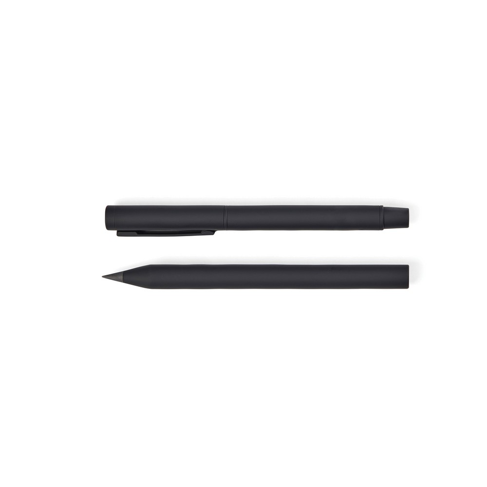 Ekskluzywny zestaw piśmienny, pióro kulkowe oraz długopis, niebieski wkład, wykonane z materiału z recyklingu, produkt zawiera 52% aluminium z recyklingu oraz 10% stali nierdzewnej z recyklingu