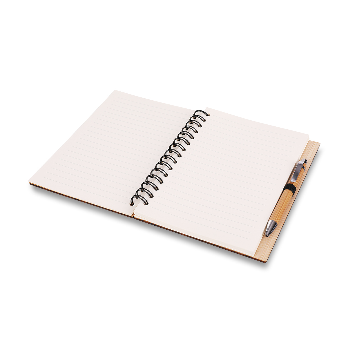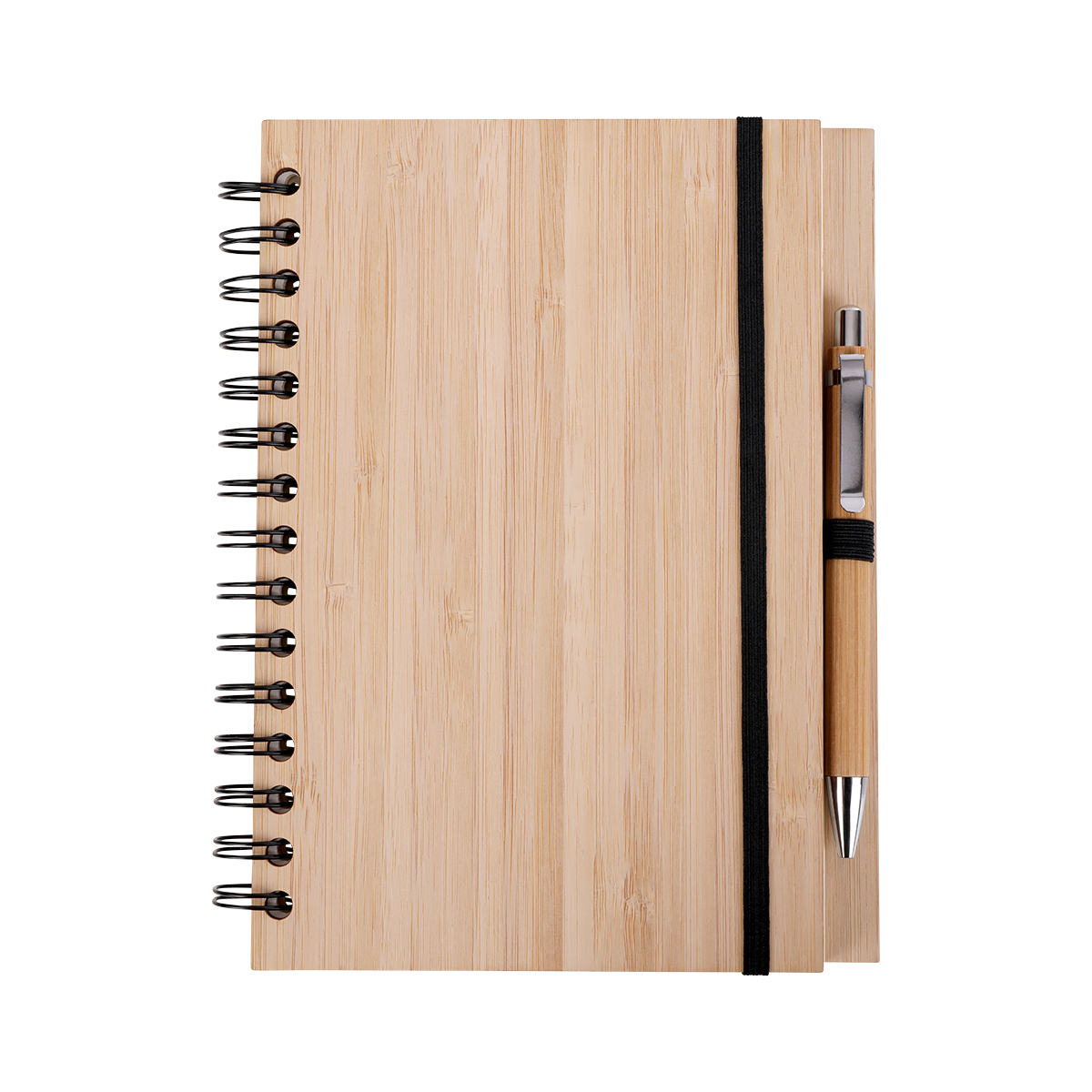 Bambusowy zestaw w upominkowym pudełku. Składa się z notesu w formacie A5 (70 kartek w linie, 80g/m2 ), długopisu z czarnym wkładem, breloka oraz organizera na kable z funkcją podstawki pod telefon.