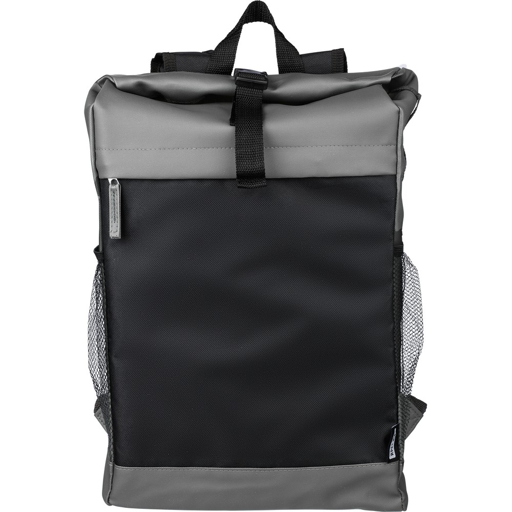 Zwijany plecak na laptopa z zapięciem na rzep, 5 kieszeni, w tym jedna na laptopa 15", pojemność: 25 l, udźwig: 15 kg, wodoodporna powłoka z PU, ikona RPET na metce, produkt wykonany z RPET